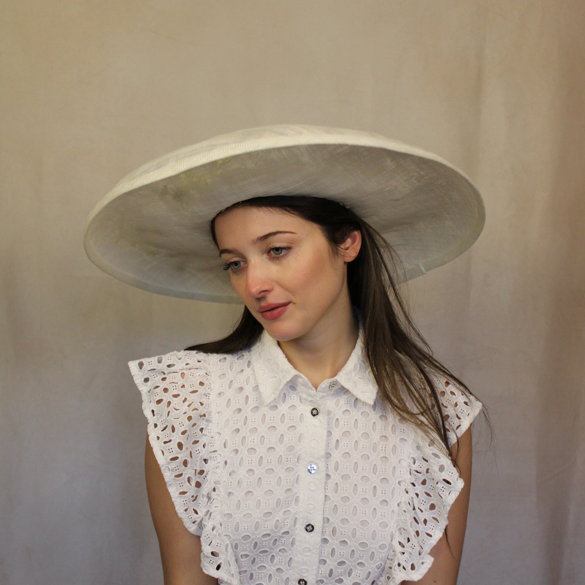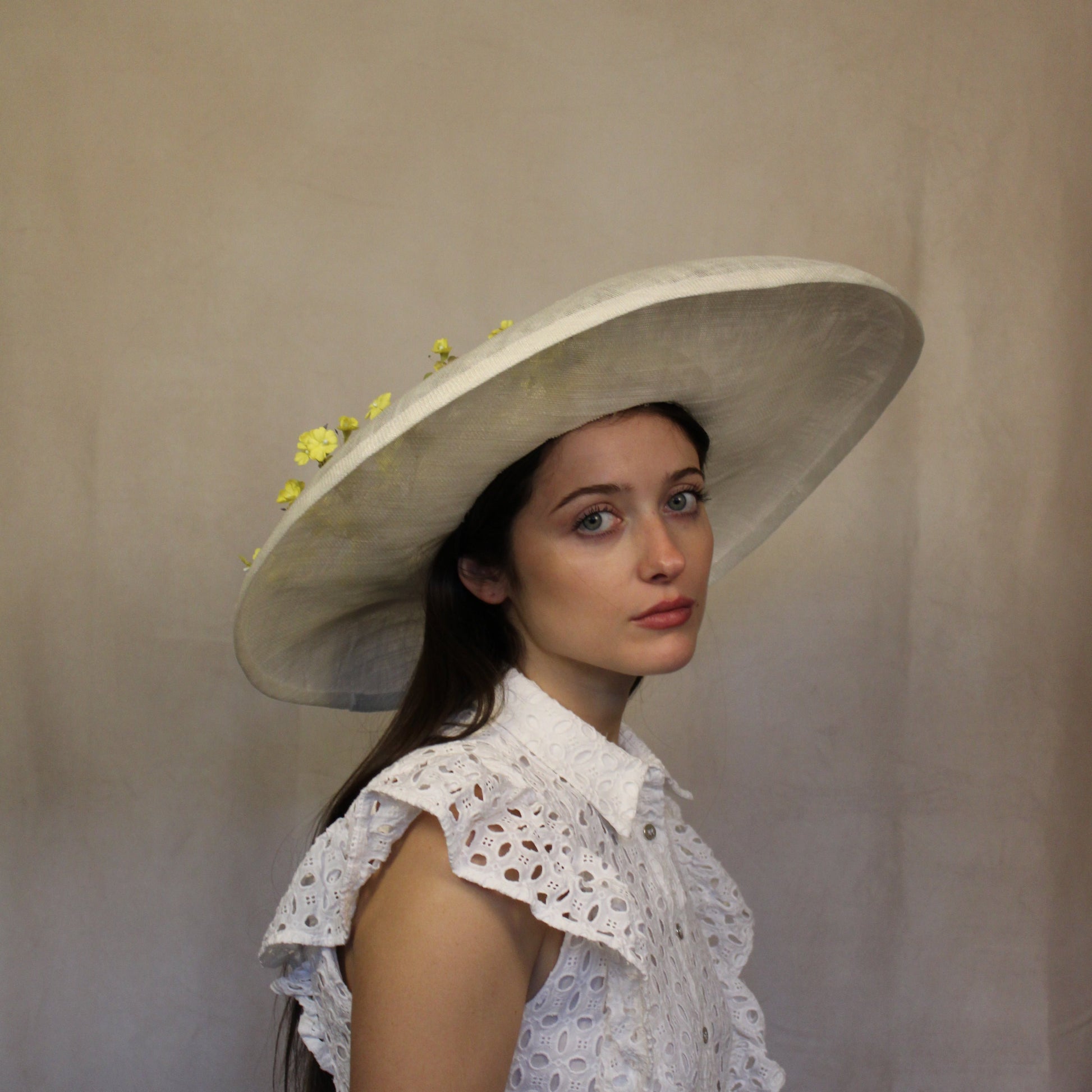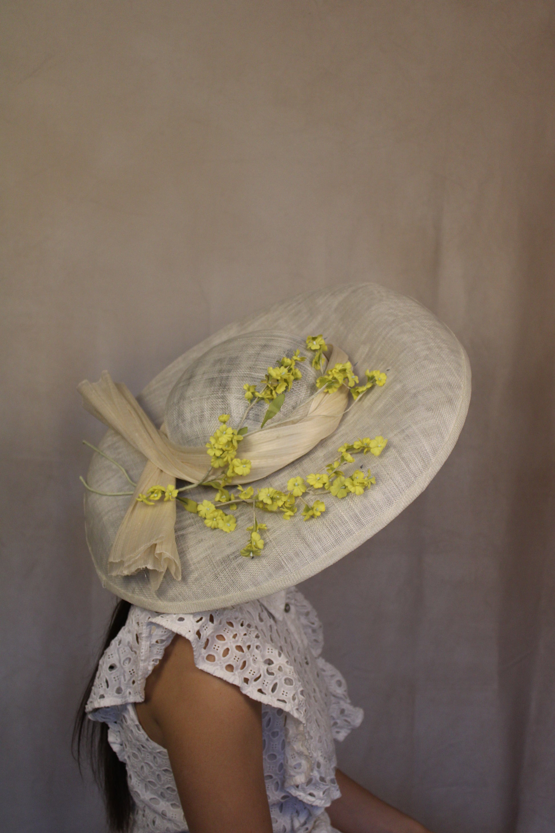 Cream and Yellow hat with vintage flowers and silk Abaca