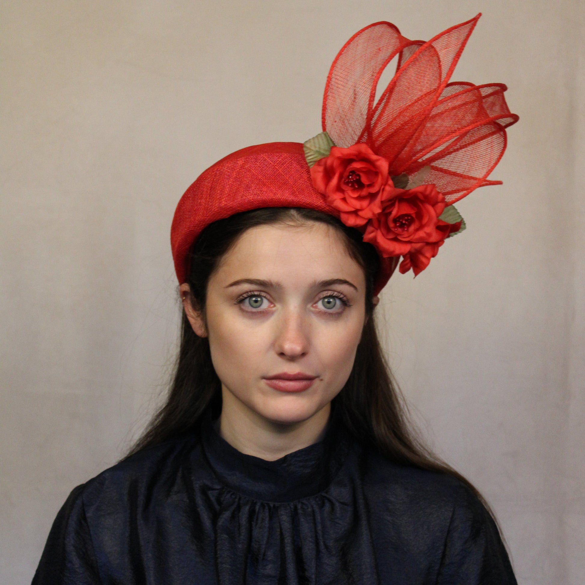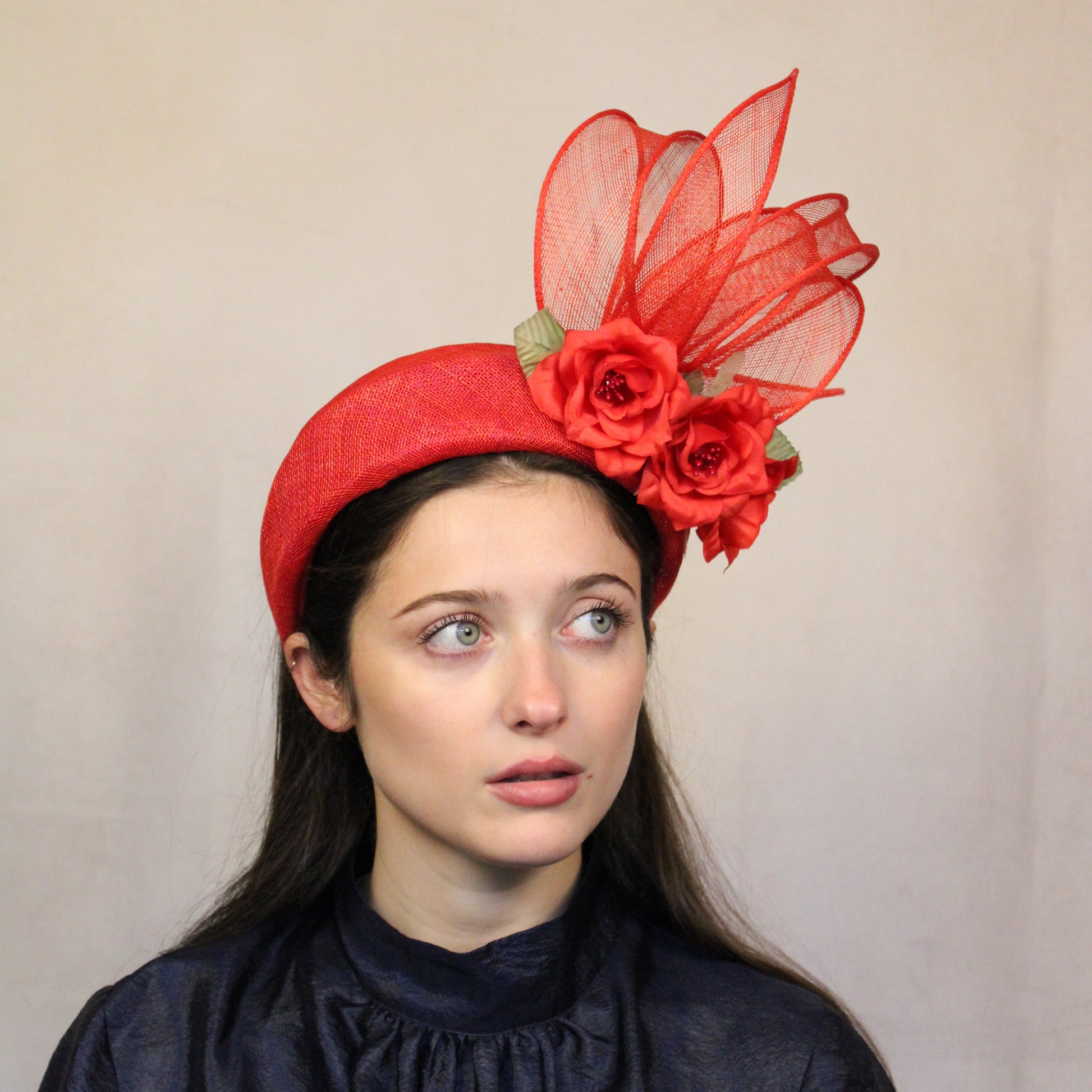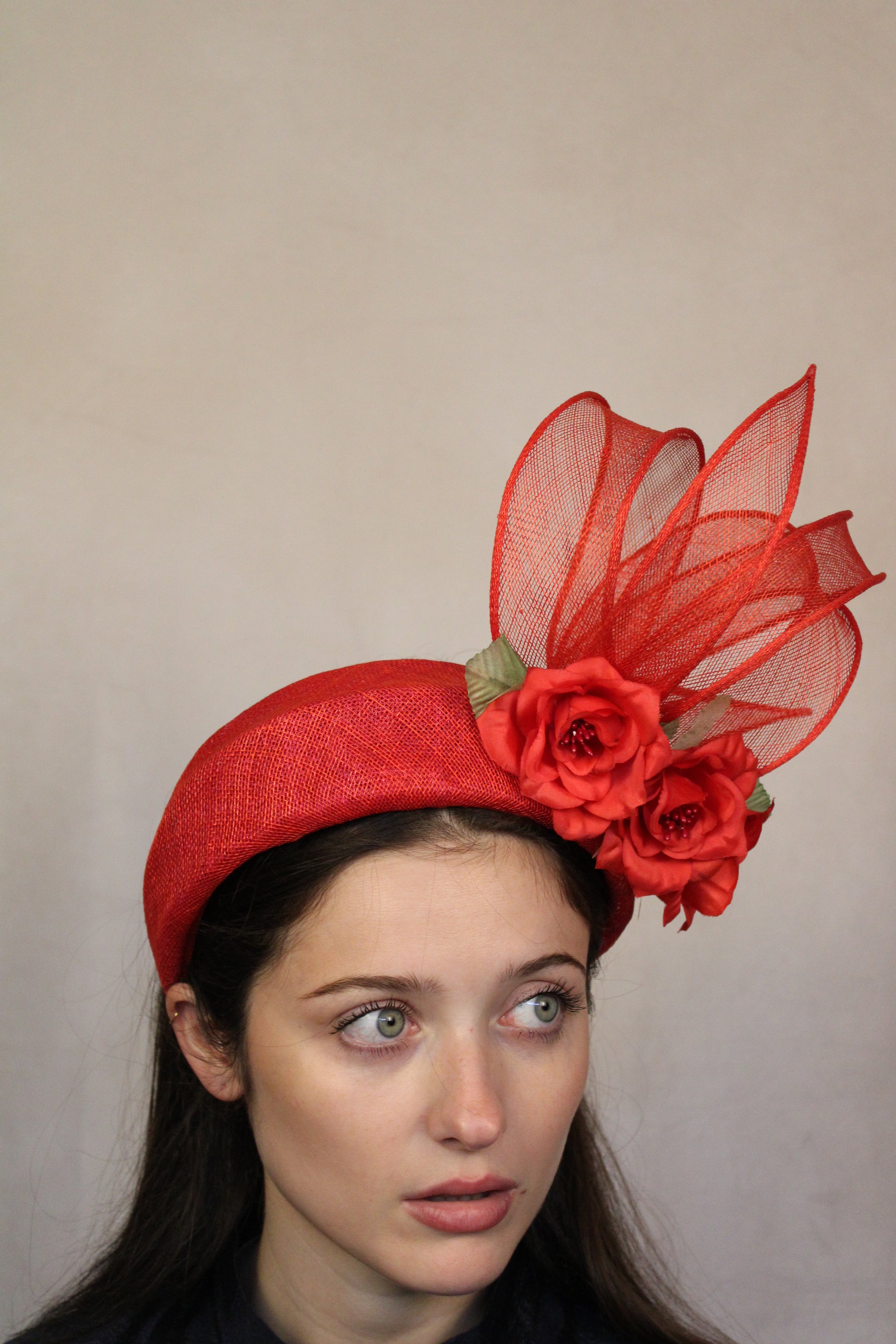 Red Halo with silk flowers to hold in place.